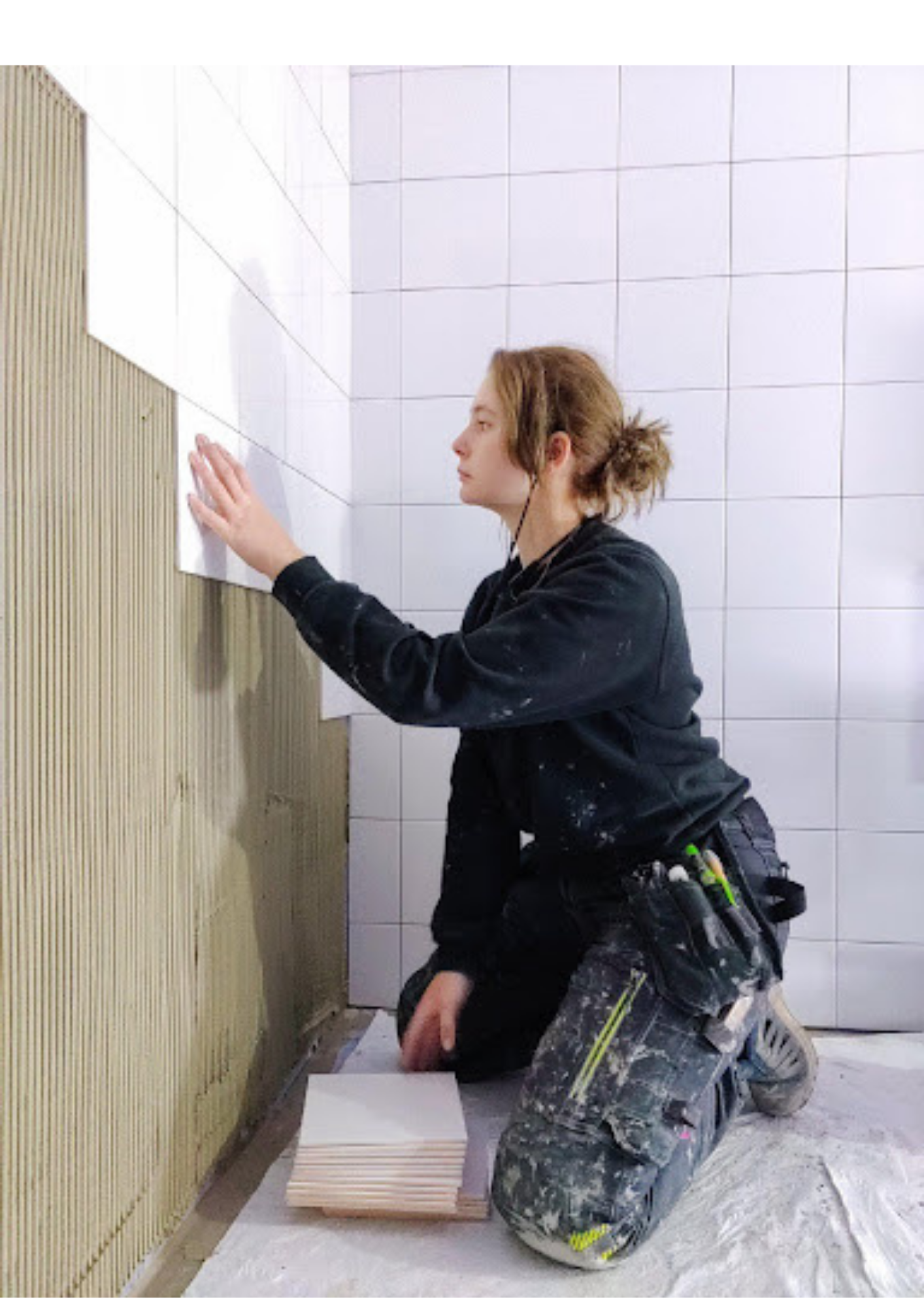 I våtrumsrenovering ingår ibland att flytspackla golv för att få till rätt fall mot golvbrunnen. När underarbetet är klart sätts plattorna på fästmassa enligt ett mönster utifrån en ritning. Det kan vara diagonala mönster eller särskilda inslag av plattor med annan färg eller form.