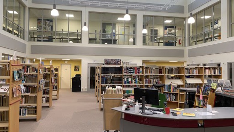 I biblioteket finns förutom bibliotekarierna Mia, Mikael och Michael också skönlitteratur, faktaböcker och tidskrifter. Vi hjälper dig gärna med bland annat boktips och informationssökning.