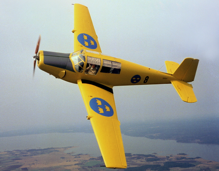 Flygplanet som finns vid E4:an, norra infarten till Linköping, levererades till flygvapnet 1952 och tjänstgjorde som skolflygplan på F 5 i Ljungbyhed och senare som sambandsflygplan på F 7 i Såtenäs. Sista flygningen skedde 1987 med totalt antal flygtimmar på 5956 timmar. Samma år iordninggjordes flygplanet av F3 veteranflygklubb och återfick då sin ursprungliga gula färg. 2011 målades flygplanet på nytt.