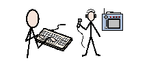 skriver texter till tidningen.