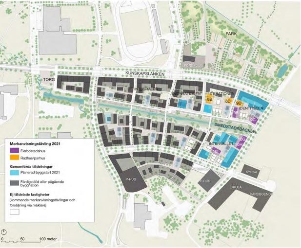 Markanvisningstävlingen omfattade åtta tilldelningsområden med totalt 50 lägenheter i flerbostadshus och 7 rad-/parhus.