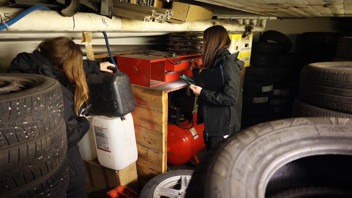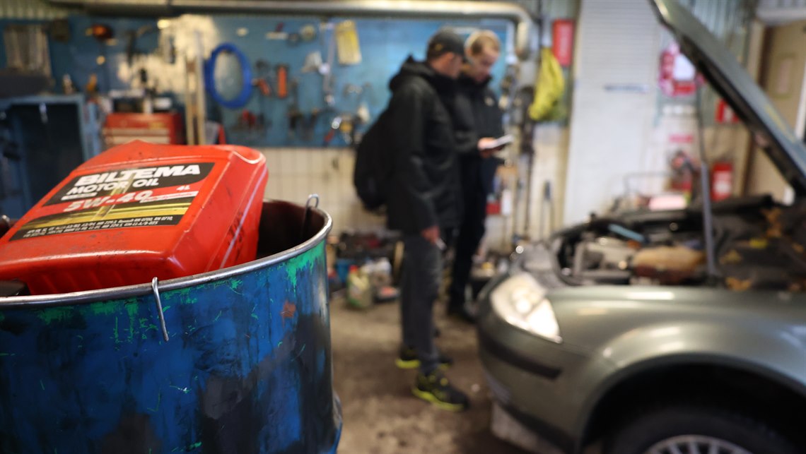 Besöket tar en stund. Kontrollanterna får kryssa fram mellan bildelar, maskiner och allsköns bråte när de ser sig om i den lilla lokalen. Kommunens kontrollanter reagerar på golvbrunnen, och vad som kan hamna där, och hur verksamheten hanterar miljöfarligt avfall. Finns det risk att giftiga ämnen kommer ut i avloppsvattnet? Källaren är knökfull med däck. Det är smutsigt och rörigt.
