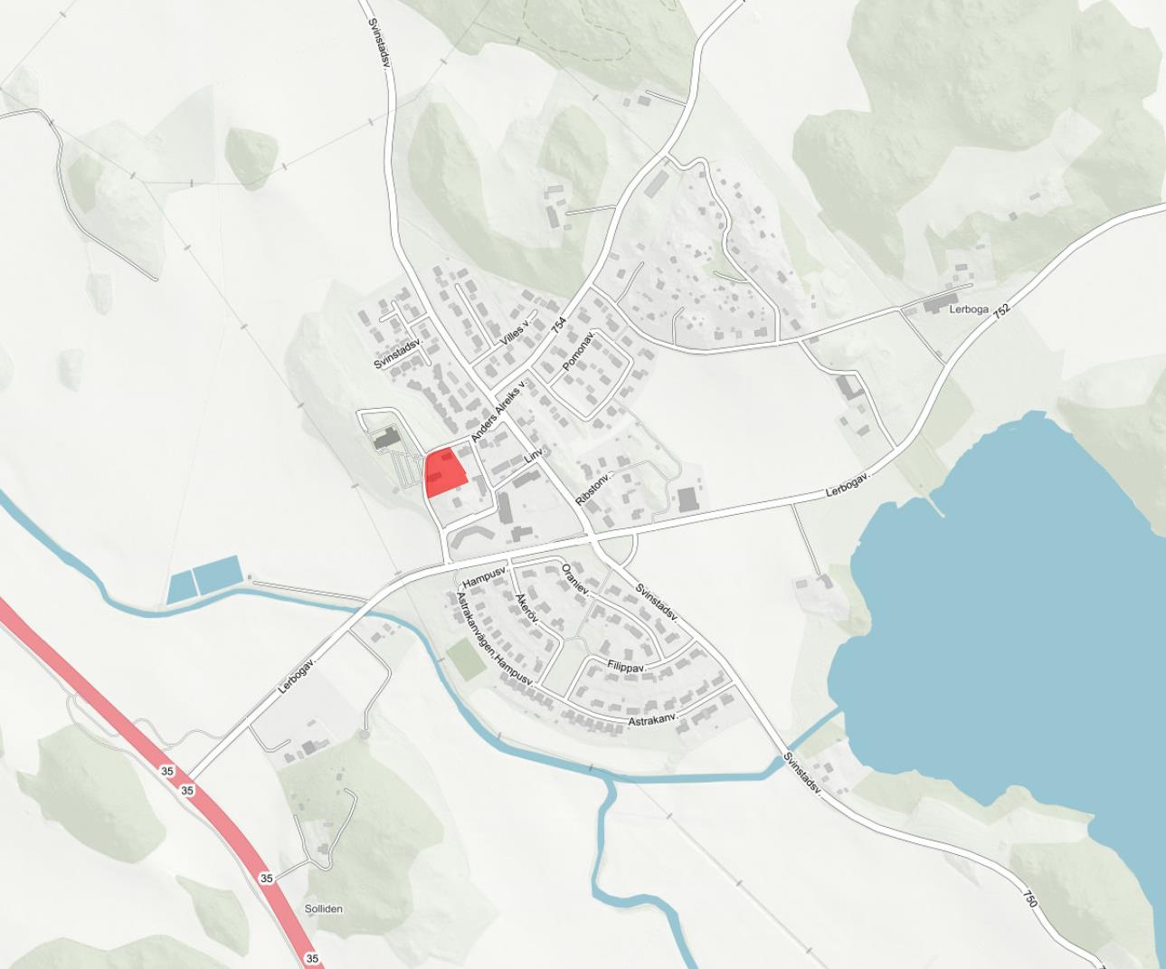 Kartbild med detaljplaneområdet markerat.