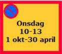 Under perioden 1 oktober till 30 april gäller parkeringsförbud kl 10-13 fördelat mellan måndag, onsdag och fredag på olika gator. Läs på vägmärkena på plats för att se vilken dag som parkeringsförbudet gäller. Observera att parkeringsförbudet även gäller för dem som har boendeparkeringstillstånd.