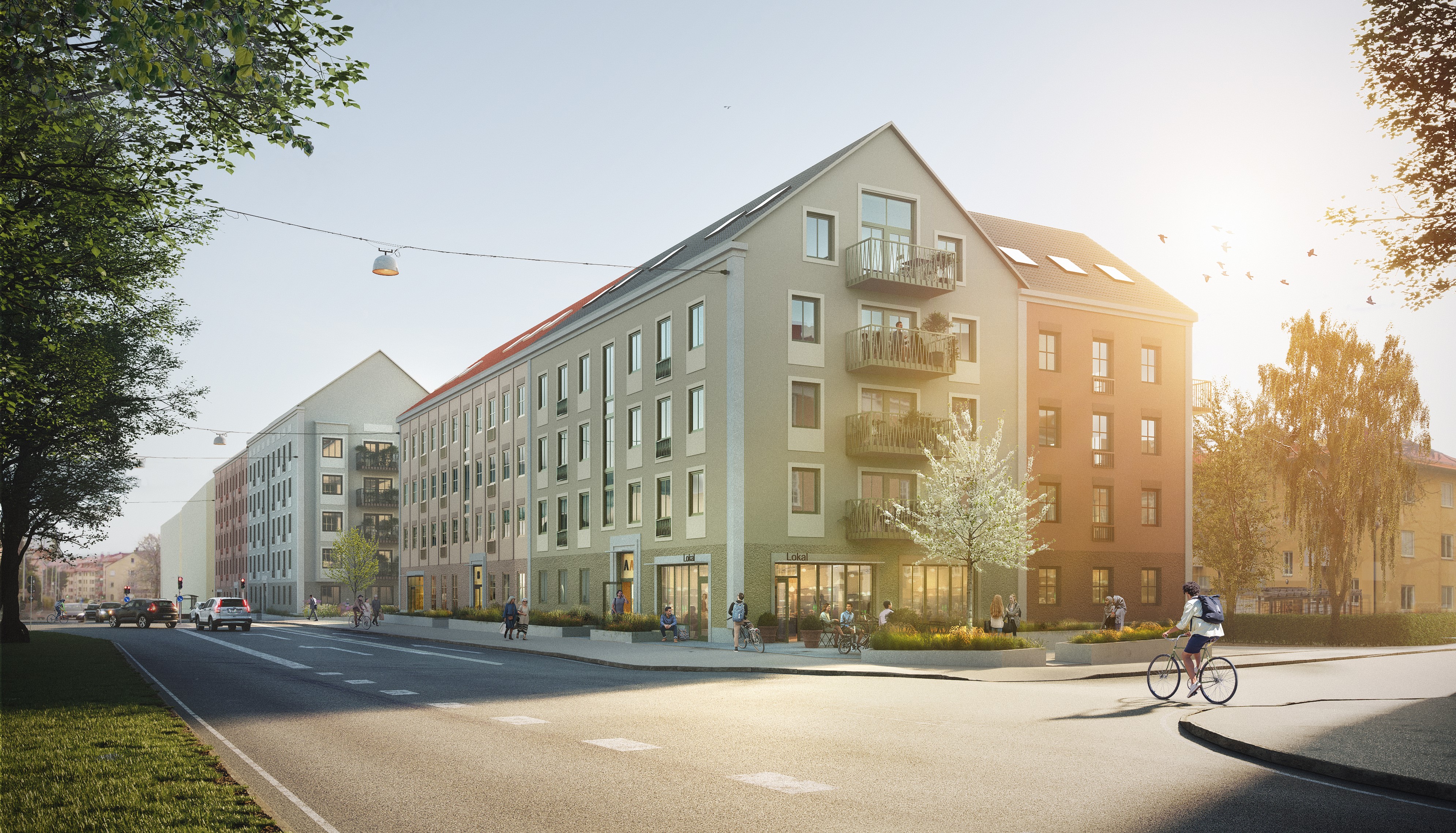 Visionsbild för hur husen vid Ellipsen 8 och 9 kan komma att se ut.