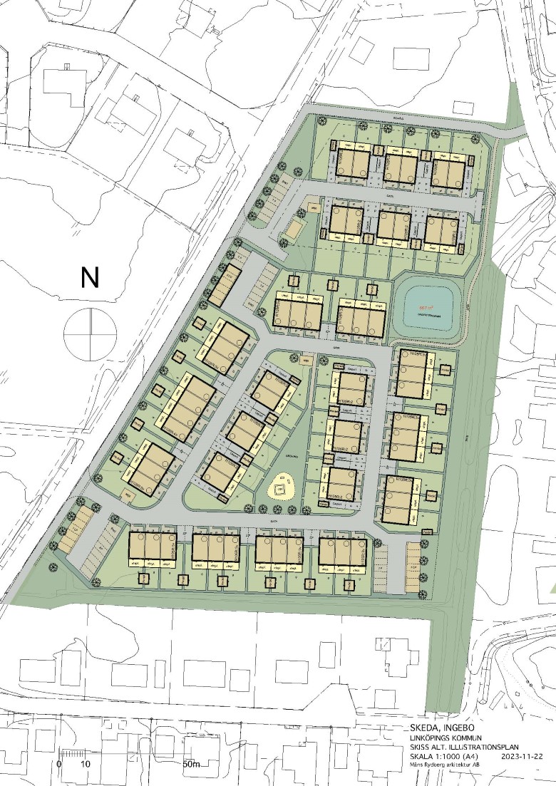 I den södra delen av Skeda udde kommer cirka 50 bostäder att byggas, bland annat rad- och parhus samt småhus. Området delas in i två etapper varav cirka 20 bostäder ingår i den första etappen.