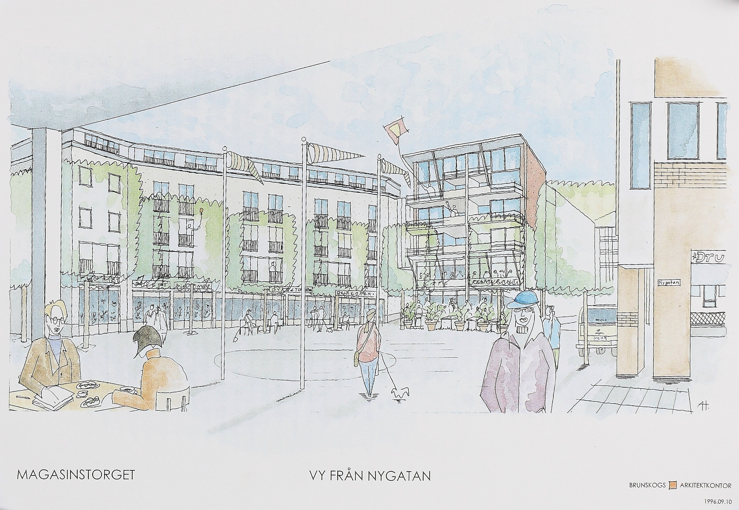 Även om skissen från 1996 skiljer sig lite grann från dagens verklighet så blev det ungefär som det var tänkt. Idag kan Magasinstorget ses som en förlängning av stadskärnan och affärs- och promenadstråket som går Nygatan fram via bland annat Lilla Torget ned mot Hamngatan och Stångån.