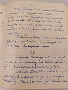 I en protokollbok från Norra Valkebos skolstyrelse (lärarkåren) 1952 hittar vi flera olika varianter på handstilar. En stil är väldigt tydlig och i princip textad. Andra mer snirkliga och lutande. Handstilar är mer personliga och man får anpassa sin läsning efter vem som skriver.