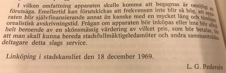 Utdrag ur protokoll, fört vid sammanträde med drätselkontorets arbetsutskott i Linköping den 29 december 1969.