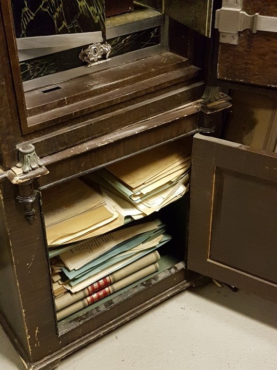 Den nye vaktmästaren, Markus Karlsson, fick reda på detta och gav sig den på att hitta nyckeln. Och gjorde det! Nu kunde skåpet öppnas och när man såg att det var fullt av gamla handlingar kontaktades Stadsarkivet.