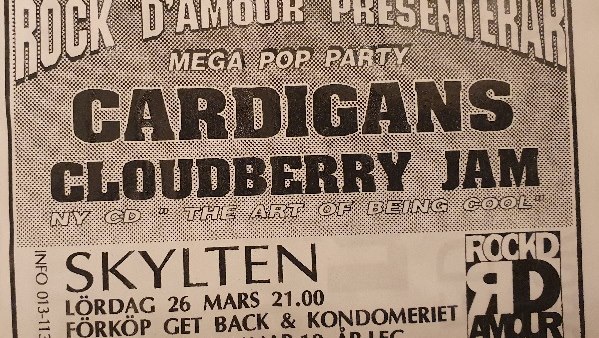 Biljett till banden Cardigans och Cloudberry Jam. Bild: Linköpings stadsarkiv