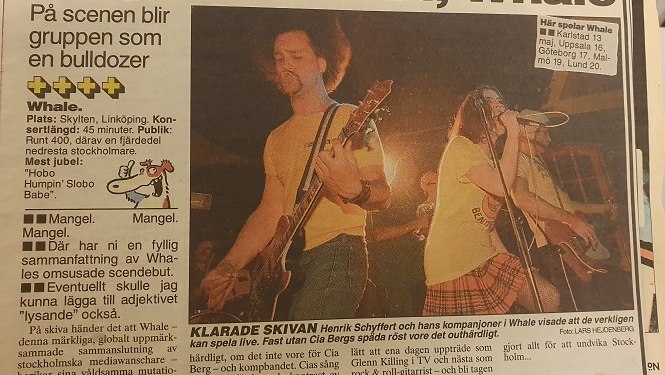 Recension av bandet Whales spelning i Aftonbladet. Bild Aftonbladet 13/5 1995/Linköpings stadsarkiv