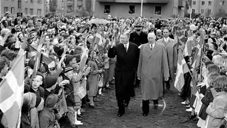 Kung Gustav VI Adolf besöker den nybyggda skolan, 1953.