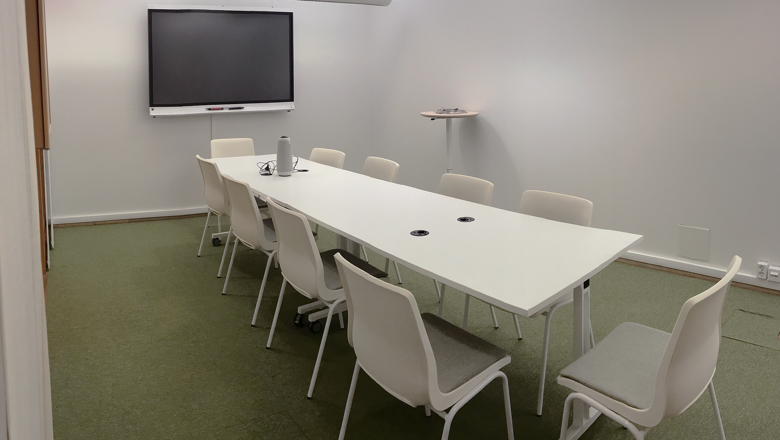 Teknisk utrustning: Bildskärm 65", HDMI-kabel, Meeting Owl (ett videokonferenssystem med 360° kamera med inbyggda högtalare och mikrofoner).