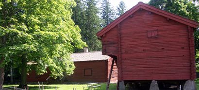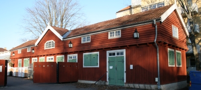 Den röda ladan som står intill växthusen, uppfördes 1919 och är ritad av Sven Torgersruud.