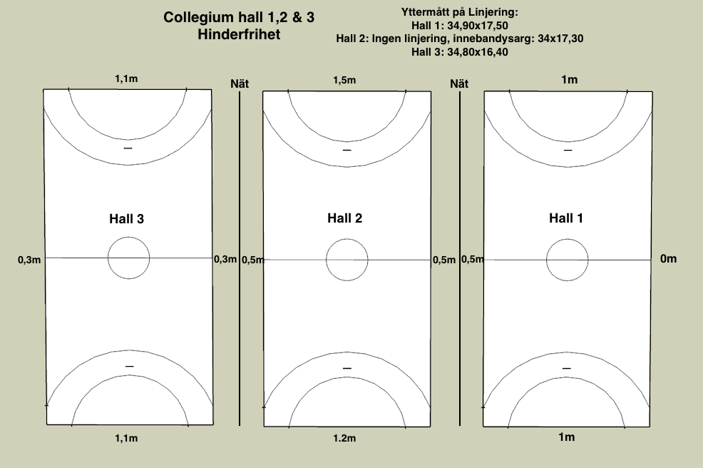 - Innebandymål och sarg (med extra kantdelar, möjlighet till två mindre planer)