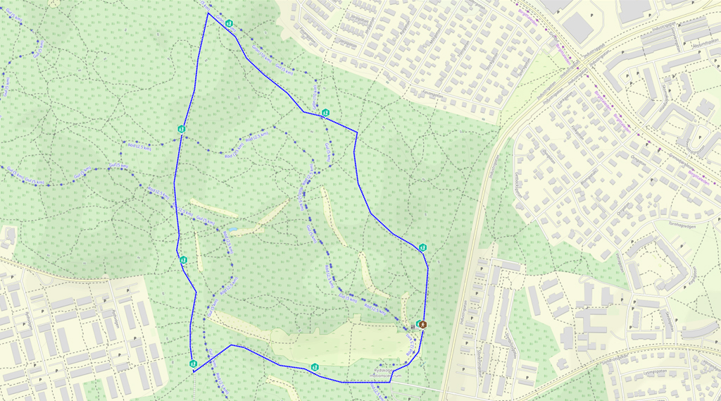 Övrigt: Längs med spåret finns 8 QR-koder uppsatta. Scanna dem så får du instruktioner till träningsövningar. Du hittar ytterligare 5 QR-koder i utegymmet som ligger i anslutning till spåret.