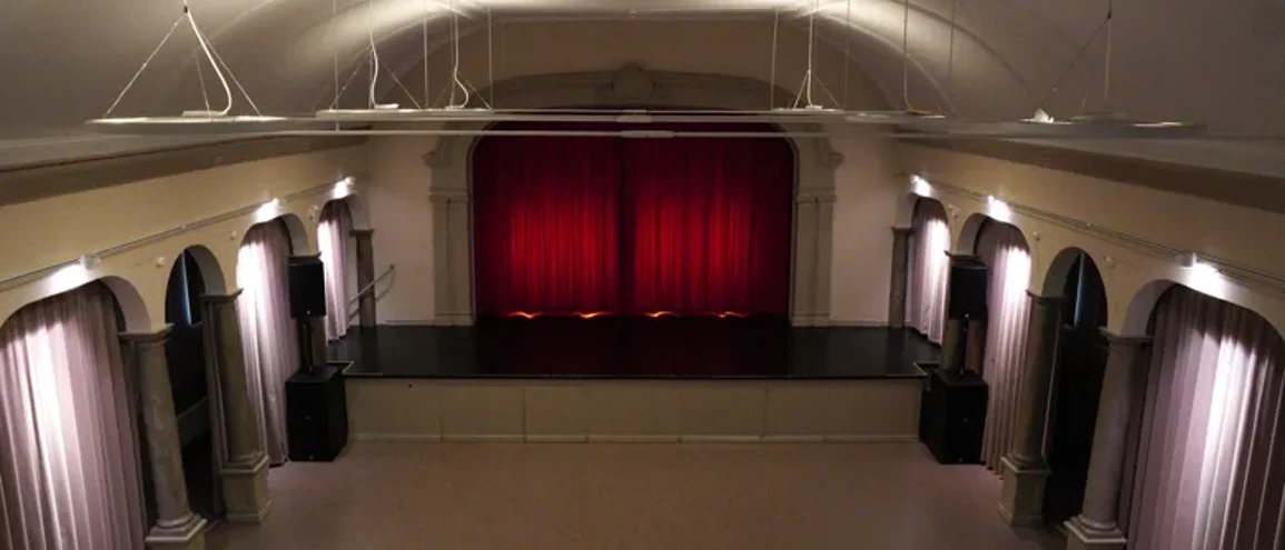Stora salen är en flexibel kulturlokal med en scen som är perfekt för olika former av dans-, musik- och teaterframträdanden. I anslutning till scenen finns en loge med dusch och toalett. Observera att logen har en något låg takhöjd, 175 cm på de lägsta partierna och 197 cm som högst. Publikkapaciteten är 120 vid sittande publik. Vid stående publik finns en begränsning i ventilation som tillåter max 200 personer i lokalen. Dock kan åtgärder sättas in för att utöka publikantalet till 300 stående, hör av dig till oss så berättar vi mer. Lokalen är fullt utrustad med PA och scenljus, för mer info om teknik se separat bilaga. Lokalen upplåts obemannad en teknikgenomgång med tekniker vid ett tillfälle ingår.