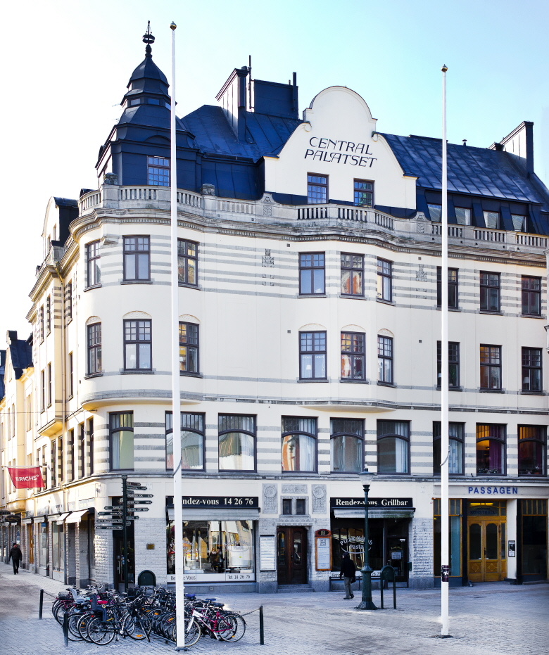 Det ståtliga Centralpalatset i Trädgårdstorgets sydvästra hörn har påkostade material och var mycket modernt när det invigdes 1908. Hela huset hade elektrisk belysning, det byggdes en elektrisk hiss vid entrén mot torget och ett för tiden avancerat ventilationssystem installerades. Den välkomponerade fasaden mot torget är uppförd i jugendstil och en av Linköpings mest kända.
