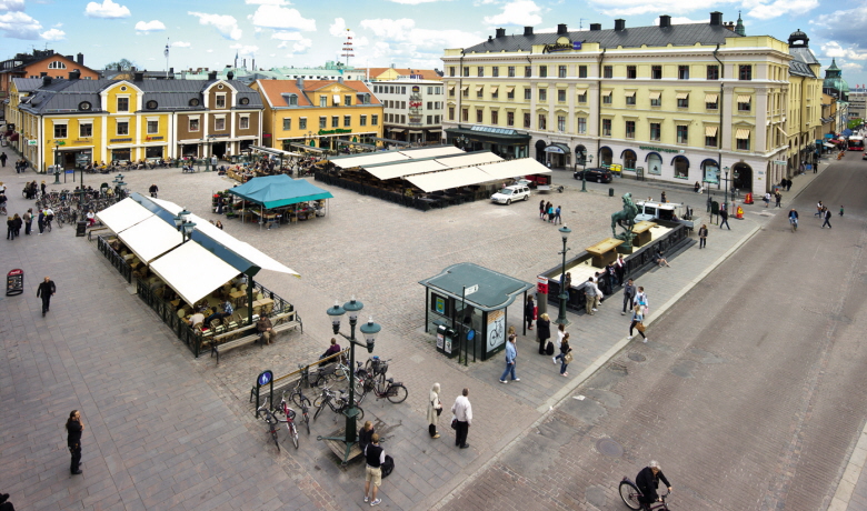 En förklaring till att torget är så livfullt är att många viktiga gator möts här. Tanneforsgatans diagonal skapar en genväg till Trädgårdstorget, Storgatan löper rakt över torgytan, flera mindre gator kommer in i de olika hörnen – och fortsätter egentligen över torgytan längs med fasaderna. Torget blir därför det mest centrala stadsrummet i Linköping och en fantastisk mötesplats.