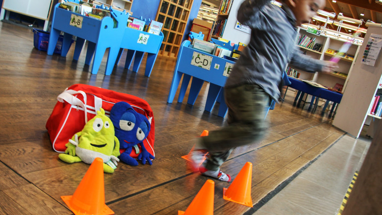 Biblioteket satsar på språkutveckling för barn. Det finns många olika väskor med olika material. Allt från de populära Babblarna till spel och leksaker. Nu kan du även gympa med barnen och träna språk.