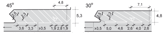Snedparkering 45 grader respektive 30 grader mot körbanan