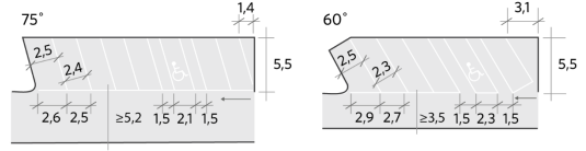 Snedparkering 75 grader respektive 60 grader mot körbanan