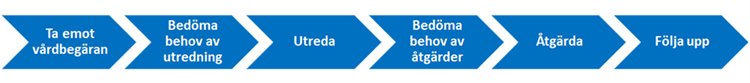 Att söka och få vård via kommunal hälso- och sjukvård beskrivs i nedanstående övergripande hälso- och sjukvårdsprocess. För att säkerställa hälso- och sjukvårdsprocessen för den enskilde behövs samverkan, samordning och säker informationsöverföring inom teamet, mellan huvudmännen och andra berörda aktörer.