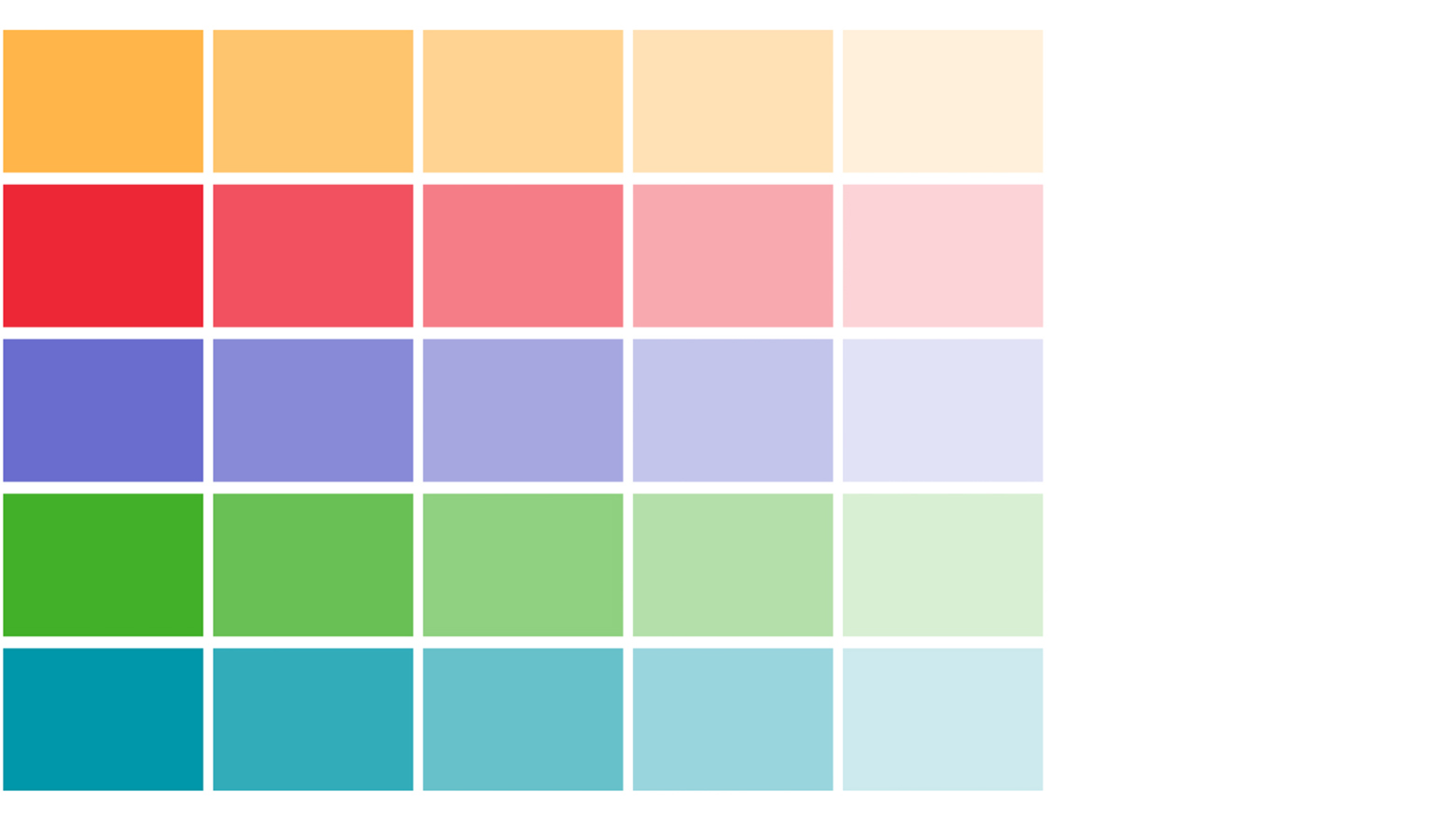 Primära färgerna kan användas i intervaller om 20 %, det vill säga 100 %, 80 %, 60 %, 40 % och 20 % när nyanserna inte räcker till exempelvis i ett diagram. Vid behov av stor kontrast, exempelvis i ett diagram, kan färgerna blandas över vertikalerna.