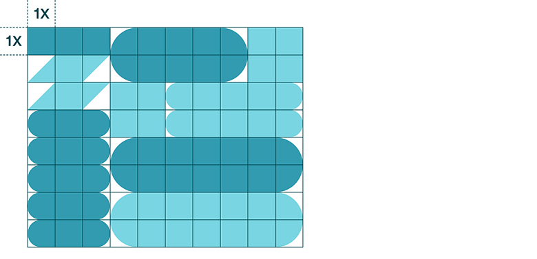Kvadrater, rektanglar och cirklar kan användas fristående eller monteras ihop med varandra, alltid inom samma färgvertikal. Geometriska former kan kombineras med typografi, exempelvis som textboxar för god läsbarhet, eller sättas samman till mönster för ett dynamiskt och levande uttryck. Det geometriska mönstret används inte tillsammans med fotografier och andra illustrationer eller på våra webbplatser.