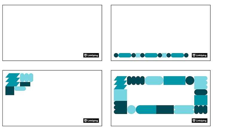 Tillsammans med logotyp, typografi och färger är geometriska former en beståndsdel i vår grafiska profil. Korrekt använda blir geometriska former ett effektivt redskap för att skapa igenkänning och bygga Linköpings kommuns varumärke.